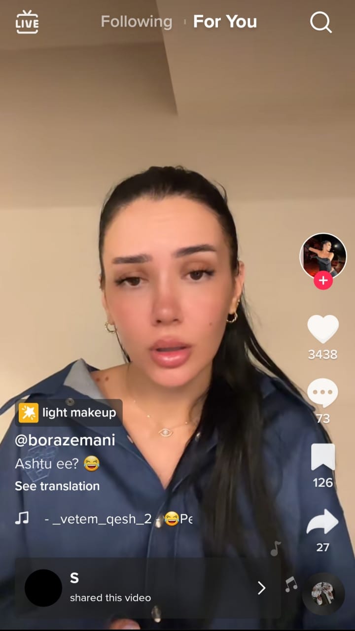 Para pak orësh, Bora ka ndarë një video në TikTok ku ka sinkronizuar buzët me një pjesë të një filmi të vjetër shqiptar ku thuhet: “Po përzotin unë e vrava mendjen”.