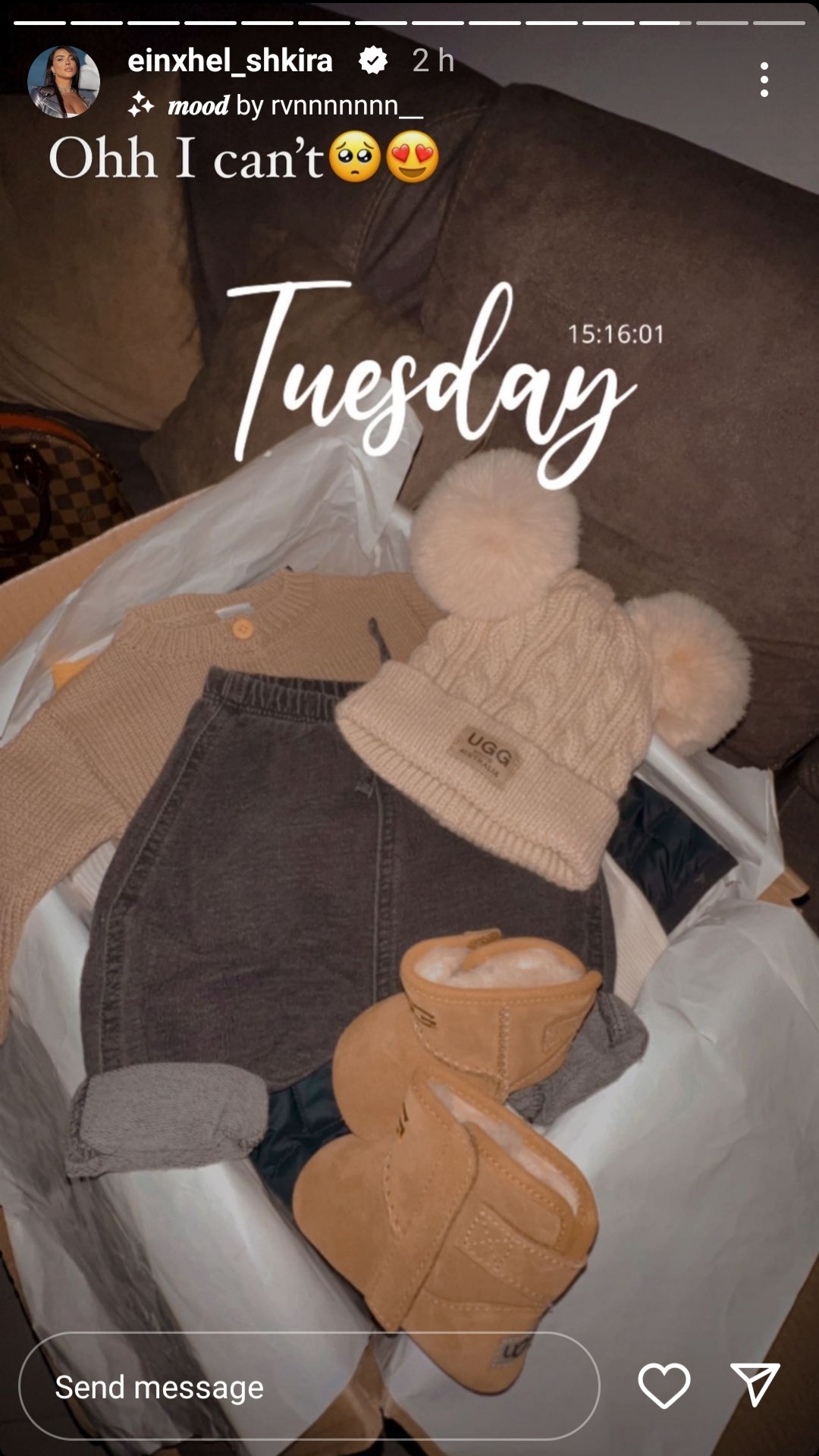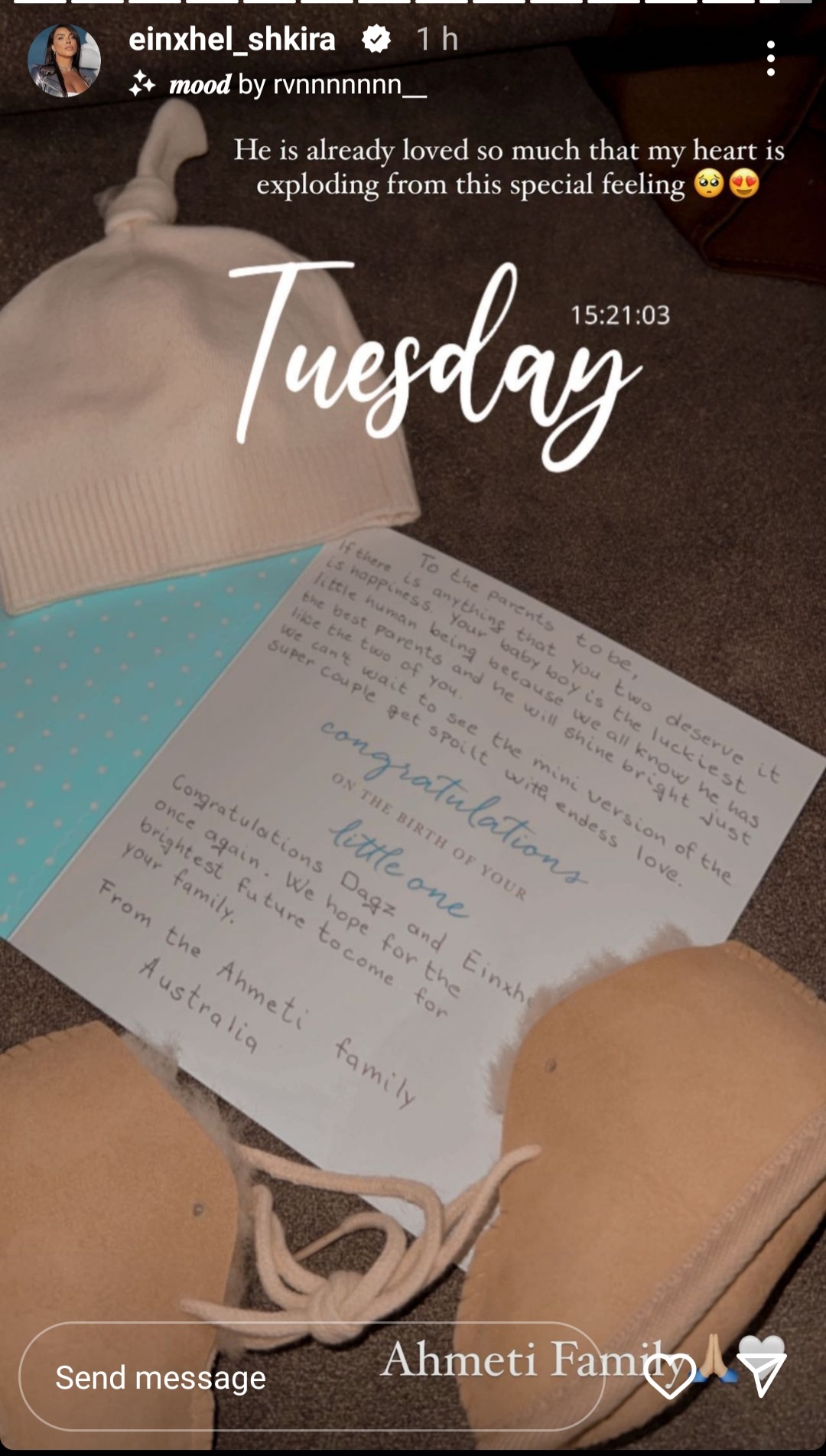 Ditën e sotme Einxhel na ka treguar se ka marrë një pako dhuratë nga një familje, të cilët janë adhurues dhe suportues të saj dhe Dj Dagz-it, të cilët jetojnë në Australi. Einxhel na ka treguar se brenda në kuti ndodheshin disa veshje për beben e tyre dhe një letër ku i kanë uruar për faktin se do të bëhen prindër.