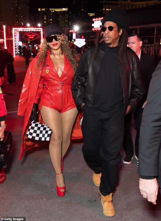 Më herët gjatë ditës, Beyonce dhe Jay-Z tërhoqën vëmendjen me mbërritjen e tyre dramatike në pistë, ku këngëtarja e “Crazy in Love” erdhi e veshur me një kostum lëkure në stil garash.
