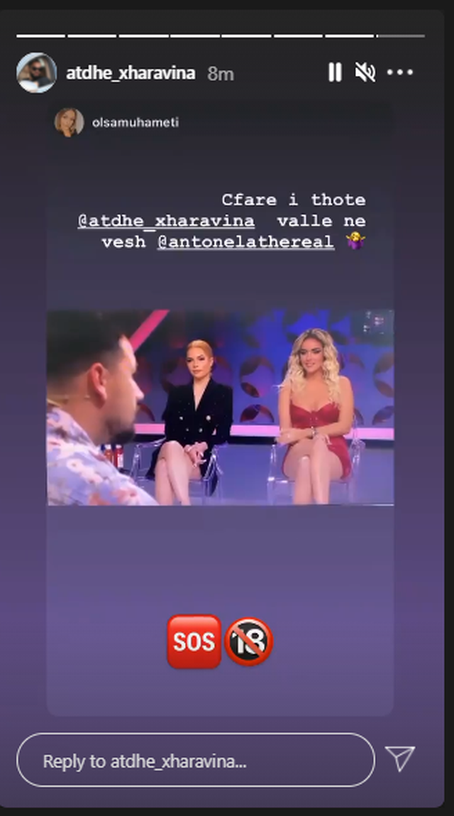 Konkurrenti e ka ripostuar videon dhe në profilin e tij, shoqëruar me disa emoji, që lënë të kuptohet se i ka thënë gjëra +18.