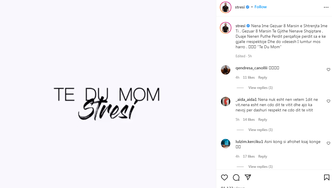 Disa prej tyre kanë zgjedhur fjalët më të ndjera në shenjë falenderimi dhe dashurie për të gjitha nënat e tyre. Por nga ana tjetër, për shkak edhe të simbolikës që kjo festë ka janë ndarë edhe mesazhe sensibilizuese në nder të të gjitha grave që janë dhunuar.