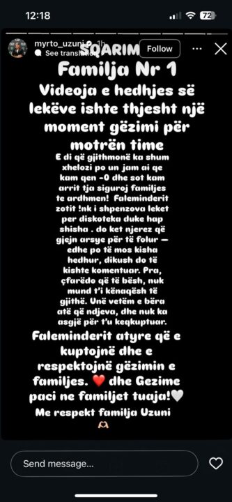 “Videoja e hedhjes së lekëve ishte thjesht një moment gëzimi për motrën time. E di që ka shumë xhelozi, por unë jam ai që kam qenë -0 dhe sot ia kam siguruar familjes të ardhmen. Faleminderit Zotit!”, shkruan ai.