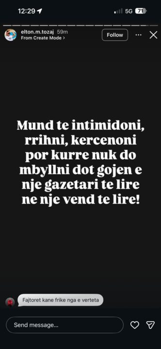 “Mund të më intimidoni, rrihni ose kërcënoni, por kurrë nuk do mbyllni gojën e një gazetari të lirë të një vend të lirë”, shkruan gazetari Tozaj.
