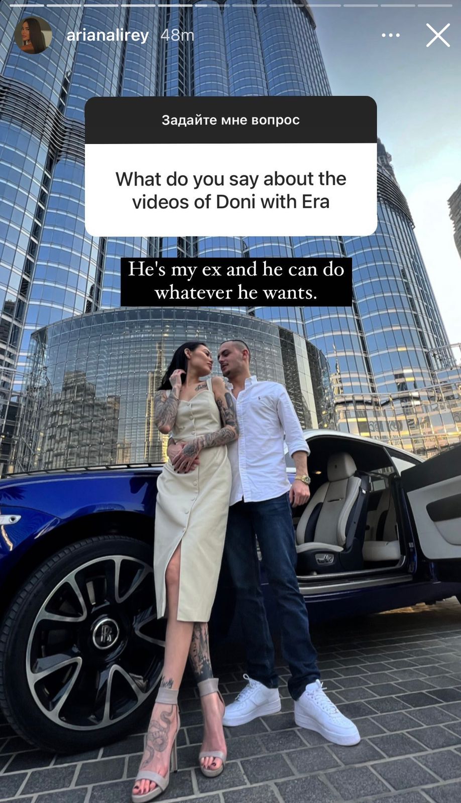 E kush është ndjekës fanatik i tj, padyshim ka dëgjuar për marrëdhënien e tij me modelen seksi ruse që sa vjen dhe na habit edhe më shumë. Fillimisht, Ariana e ‘gdhendi’ në trup portretin dhe emrin e reperit me një tatuazh dhe deri këtu u mendua si një gjest ‘i çmendur’ i një fanseje të tij. Mirëpo, deklaratat në rrjete sociale, video-t live ku i thonin njëri- tjetrit “të dua” dhe mbështetja e madhe që tregonin për njëri- tjetrin na kishte bërë të kuptonim se mes tyre kishte diçka më shumë.