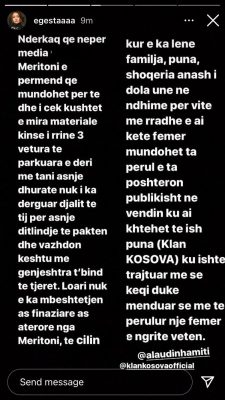 Në postimet në vazhdim, Egesta ka theksuar se djali i tyre nuk merr as pensionin ushqimor nga babai dhe asnjë mbështetje financiare, duke i bërë thirrje të mos ia përmendë më emrin nëpër intervista.