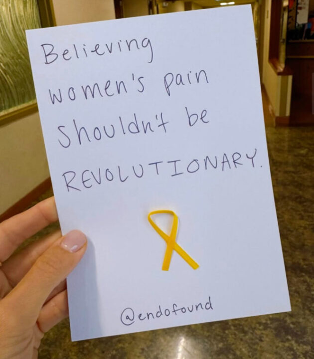 Reinhart tregoi se më parë ishte diagnostikuar me cistit intersticial dhe i ishte thënë se nuk kishte kurë, ndërsa askush nuk e kishte marrë seriozisht mundësinë e endometriozës.