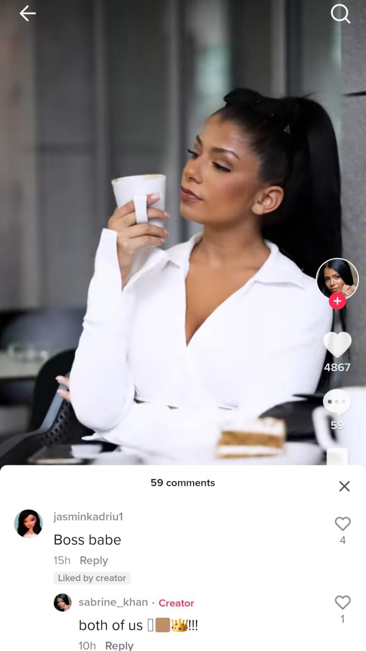 Balerina ka publikuar një video në “TikTok”, ku Jasmina i ka komentuar: “Boss zemër.” Ndërkohë, ajo i ka kthyer: “Të dyja ne”. Në këtë mënyrë vajzat na kanë lënë të kuptojmë se kanë raporte shumë të mira dhe si duket Ardiani i ka prezantuar.