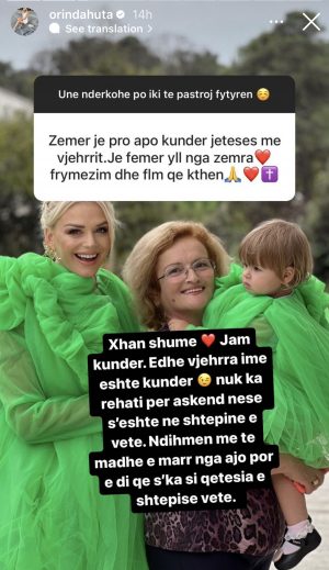 Këtë përgjigje Orinda e shoqëroi me një imazh ku dukej ajo, vjehrra e saj dhe e bija, Atara.