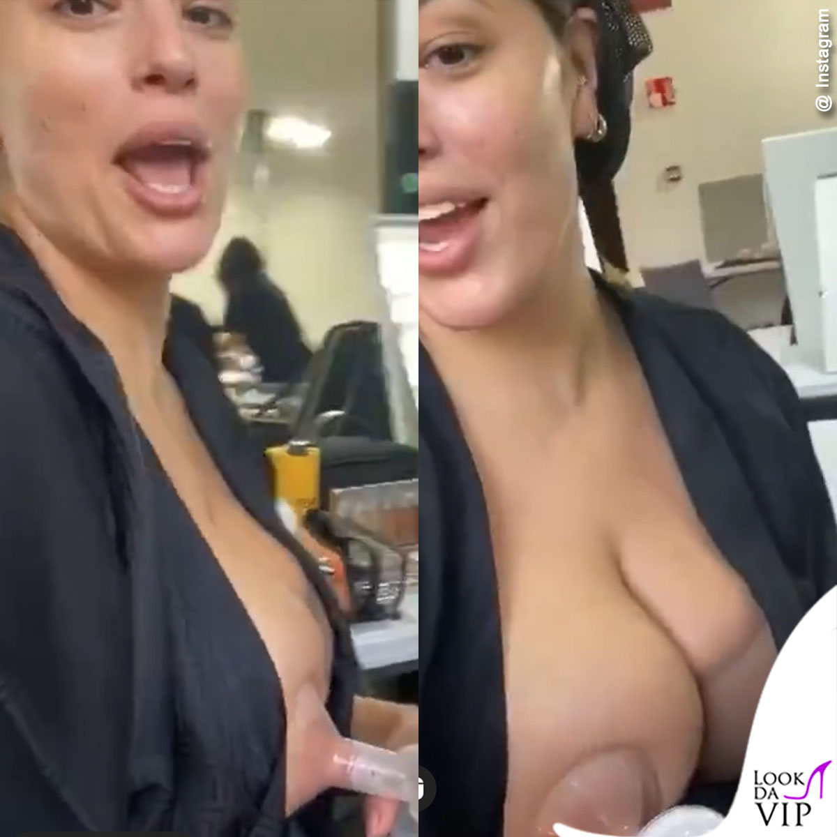 Në videon ku tregon se çfarë ka ndodhur në prapaskenë, modelja shfaqet edhe teksa merr qumështin e gjirit, dhe fansat e komplimentojnë që nuk ka aspak komplekse.