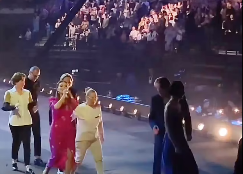 Ajo u shfaq në skenë së bashku me qindra fëmijë të vegjël në ngjarjen shumë patriotike, që shfaqte një kor ushtarak dhe simbolin famëkeq rus “Z”, i cili është bërë sinonim i luftës në Ukrainë.