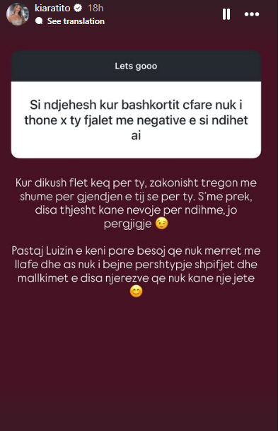 Tito shtoi gjithashtu se as partneri i saj nuk e merr mundimin të reagojë ndaj fjalëve të këqija apo shpifjeve që qarkullojnë në rrjetet sociale.