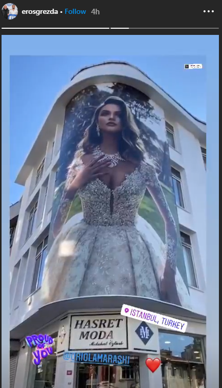 Ditën e sotme Eros publikoi një video ku partnerja e tij shfaqej në një poster të madh të një ndërtese në Turqi. Duket se ai është ndjerë super krenar për të.