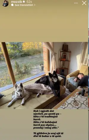 “Qentë s’të tradhtojnë kurrë, s’të kafshojnë kurrë pas shpine… prandaj i mbaj afër”, ka shkruar Mozzik në një foto që shoqërohej me një ton të qetë, por domethënës.