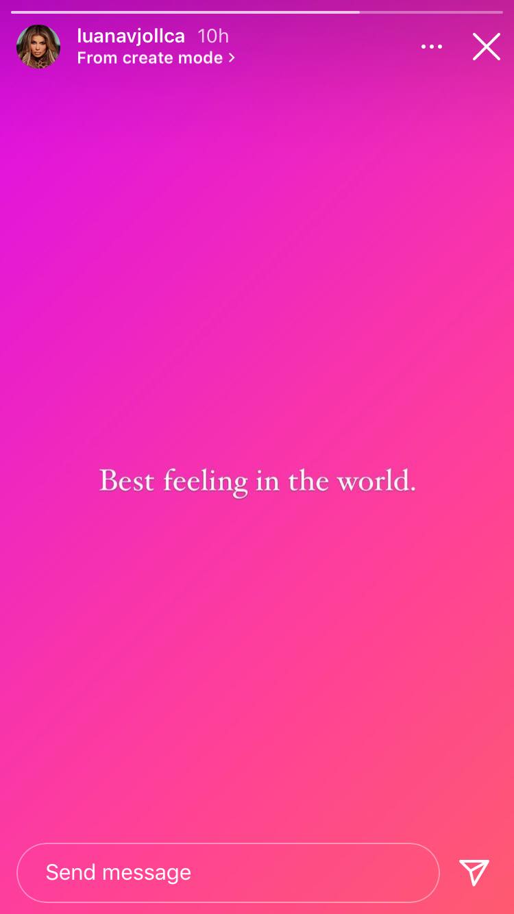 Lajmi është bërë i ditur nga motra e Marinës, Luana teksa ka publikuar një status në Instastory, ku shkruante “Ndjesia më e bukur në botë” dhe në sfond kishte zgjedhur ngjyrën rozë, duke nënkuptuar kështu edhe gjininë e bebes.