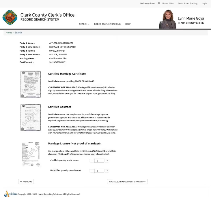Jennifer Lopez dhe Ben Affleck janë martuar të shtunën. Kështu tregojnë dokumentet e dorëzuara në shtetin e Nevada.