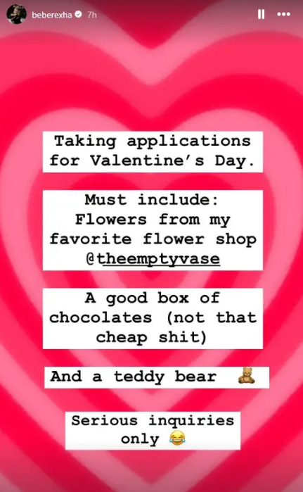 Në prag të Shën Valentinit, Bebe i habiti fansat me një mesazh që la të kuptohej se është beqare dhe e hapur për të pranuar lule nga admiruesit e saj.