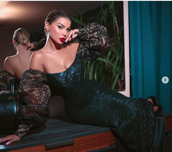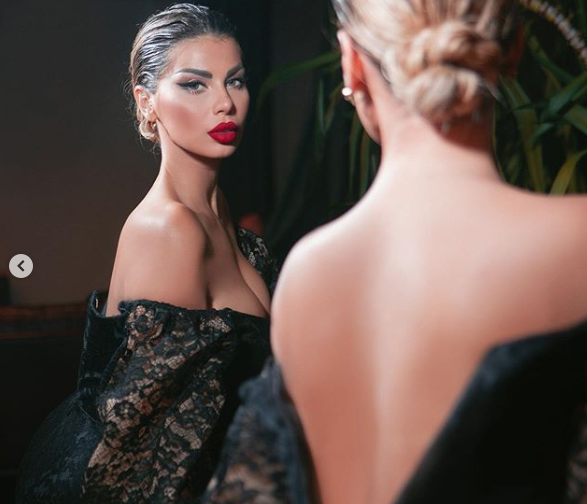 Së fundmi bukuroshja ka pozuar e veshur me një fustan të zi, të ngjitur pas trupit, që i theksonte format bombastike trupore.