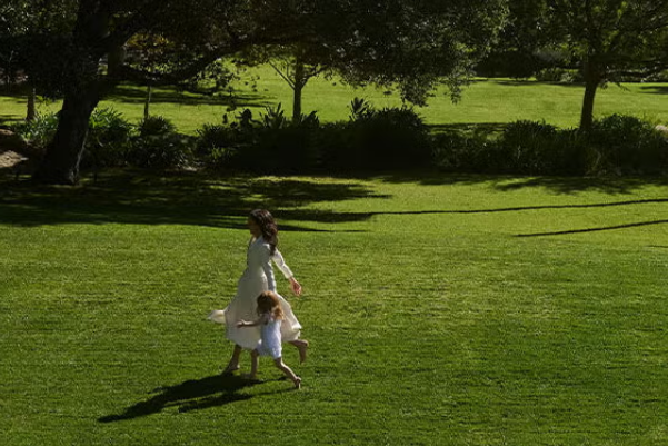 Fotoja tregon Meghan dhe Lilibet duke vrapuar nëpër një fushë, dorë për dore. Princi Harry dhe Meghan prej kohësh i kanë mbajtur fëmijët e tyre larg vëmendjes, duke e bërë këtë foto një gjë të rrallë.