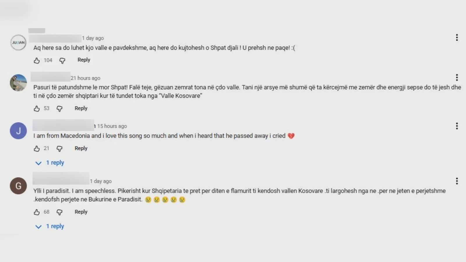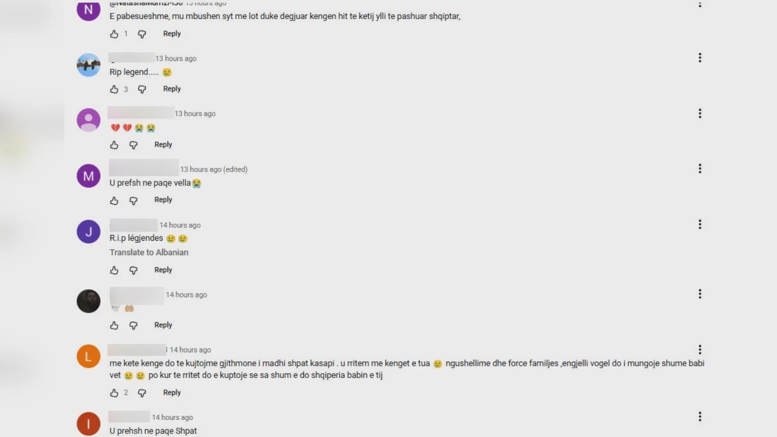 Jo vetëm shqiptarë shprehin dhimbjen për humbjen e artistit, por edhe të huaj, të cilët i quajnë të pavdekshme këngët e tij.