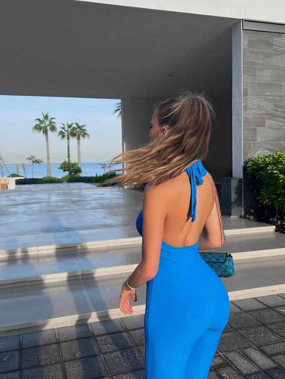 Fotot janë shkrepur në ‘’Nikki Beach’’, ku 21 vjeçarja duket e veshur me një kostum ngjyrë blu, i cili i nxjerr në pah format e saj trupore joshëse.