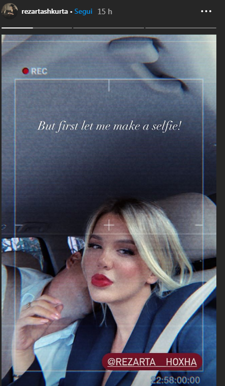 E kështu ka bërë edhe së fundmi, teksa ka postuar një foto në “Instastory”. Ata ndodhen në makinë dhe Ermali shfaqet duke tentuar që të puthë Rezartën, e cila këtë moment intim e ka kapur në një “selfie”.