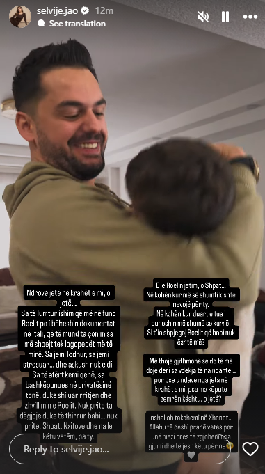 “Ndrove jetë në krahët e mi, o jetë… Sa të lumtur ishim që më në fund Roelit po i bëheshin dokumentat në Itali, që ta çonim tek logopedët më të mirë. Sa kemi lodhur, sa jemi stresuar… dhe askush nuk e di!