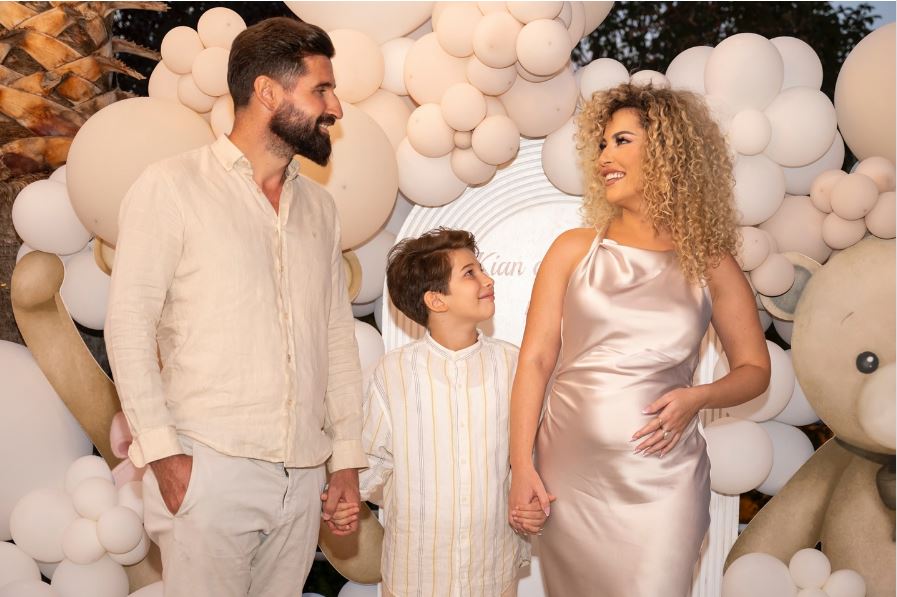 Krahas falënderimit shfaqet një foto familjare e bashkëshortit të saj me të birin dhe vetë moderatorja me barkun e rrumbullakosur.