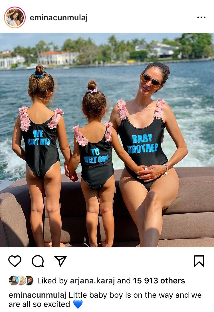 Me sa duket Emina do të sjellë në jetë një djalë dhe foton e shoqëron me shkrimin: “Djali i vogël është në anën tjetër dhe ne jemi të gjithë shumë të emocionuar”.