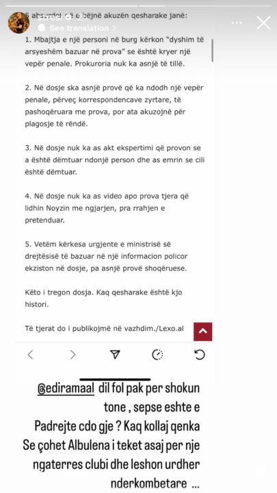“Edi Rama, dil fol pak për shokun tonë, sepse është e padrejtë çdo gjë? Kaq kollaj qenka se çohet Albulena i teket asaj për një ngatërresë klubi dhe lëshon urdhër ndërkombëtar”, ka shkruar ai.
