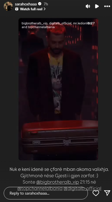 Por mesa duket nuk ka mbaruar me kaq, pasi Sara Hoxha ka bërë një postim në “Instastory” ku ka treguar se çfarë do të ndodhë gjatë spektaklit të mbrëmjes së sotme.