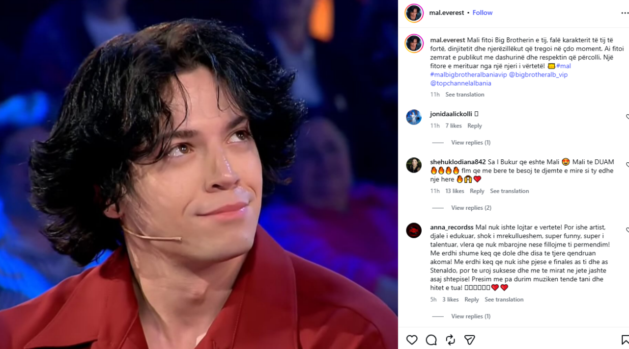 “Mali fitoi Big Brotherin e tij, falë karakterit të tij të fortë, dinjitetit dhe njerëzillëkut që tregoi në çdo moment. Ai fitoi zemrat e publikut me dashurinë dhe respektin që përcolli. Një fitore e merituar nga një njeri i vërtetë!”.