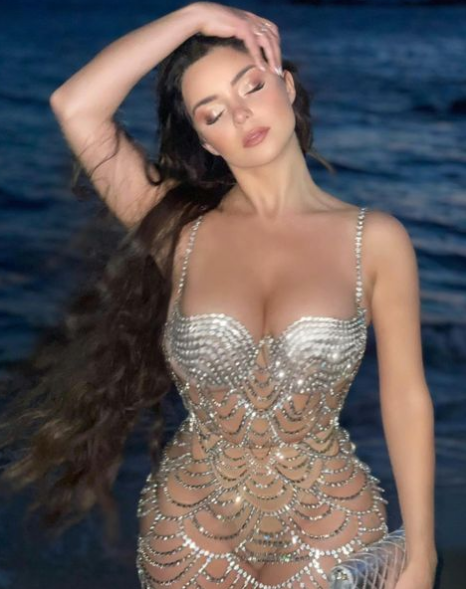 Fotoja e parë e tregonte Demin të shtrirë në pishinë, teksa pozonte me krahun anash. Ndërkohë veshur mbante një palë bikini të vogla për format e saj bombastike, që i tregonin më shumë seç duhet.