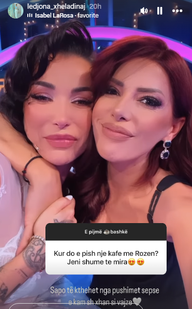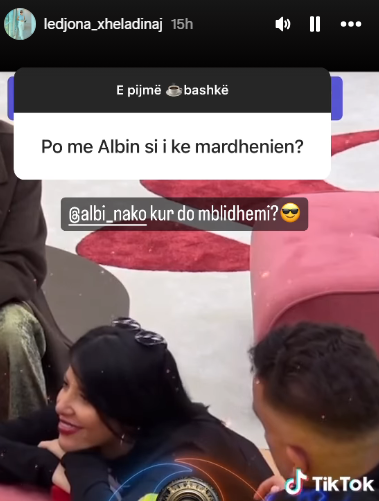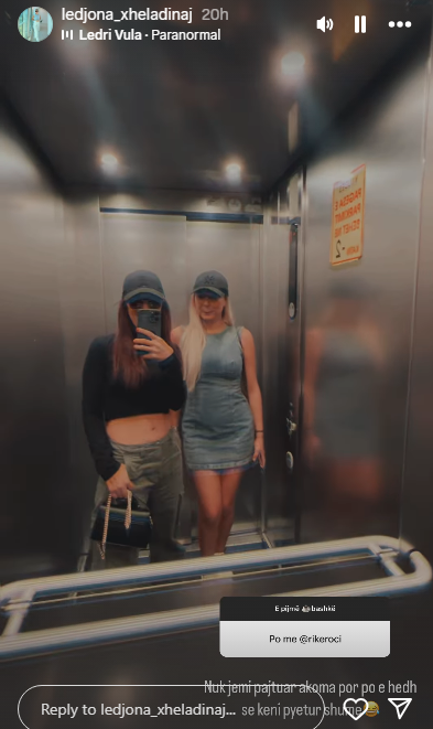 Ndërsa me Rike Roçin ka postuar një video dhe krahas saj shkruan se ‘nuk janë pajtuar, por po e poston se keni pyetje shumë’. E pyetur më pas se pse është zënë me ish-banoren, ajo duke qeshur përgjigjet ‘për buxhetin’.