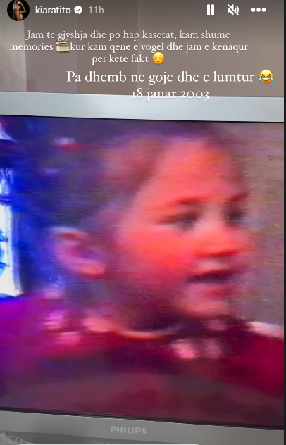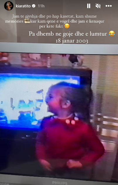 “Jam te gjyshja dhe po hap kasetat, kam shumë memories kur kam qenë e vogël dhe jam e kënaqur për këtë fakt. Pa dhëmb në gojë dhe e lumtur, 18 janar 2003”.