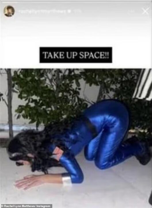Rachel kishte veshur një kostum blu identik me atë që këngëtarja e famshme mbante gjatë udhëtimit të saj në hapësirë me “Blue Origin”, ndërsa kishte vendosur edhe një paruke të zezë, duke imituar pamjen e artistes.