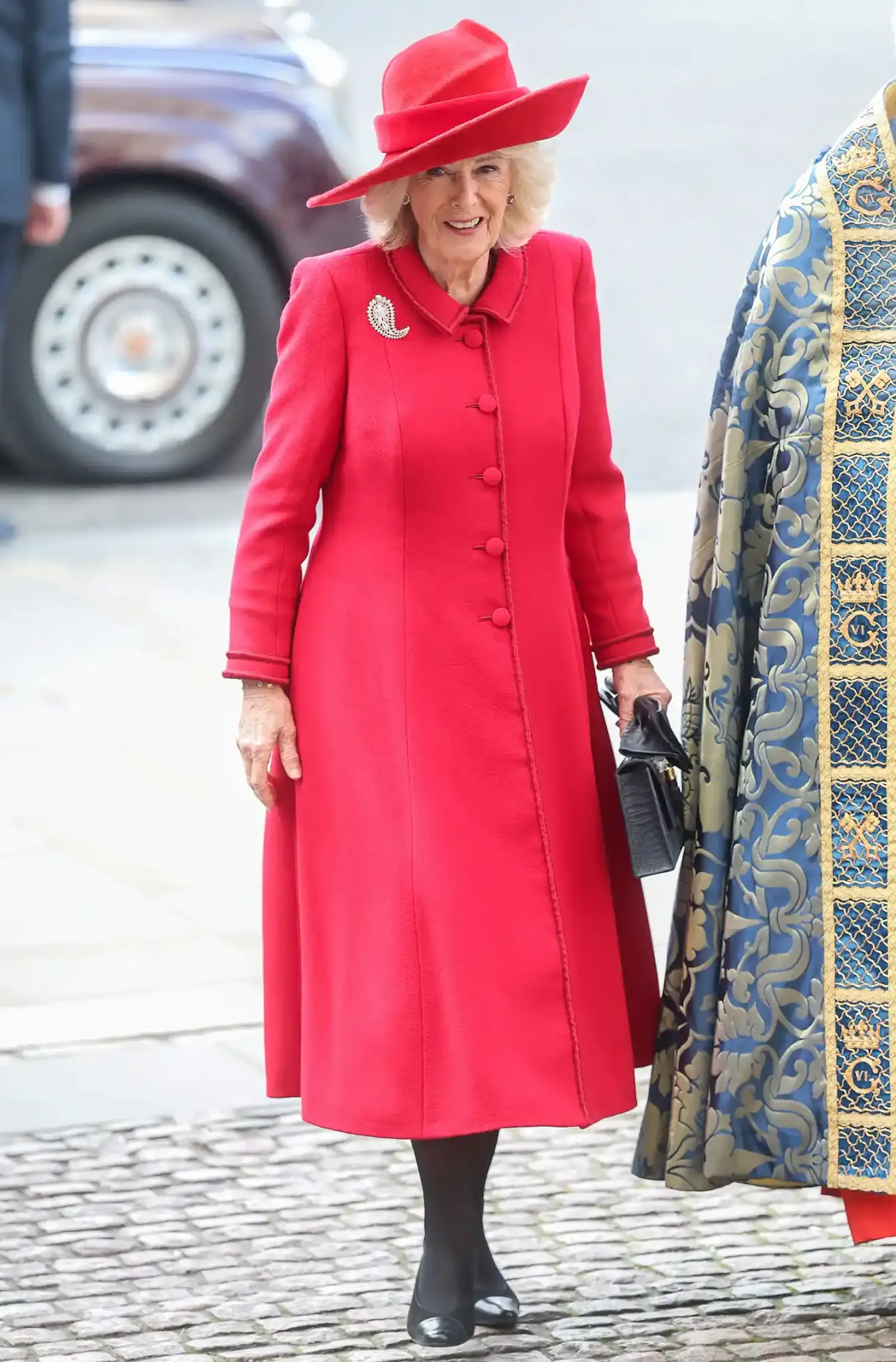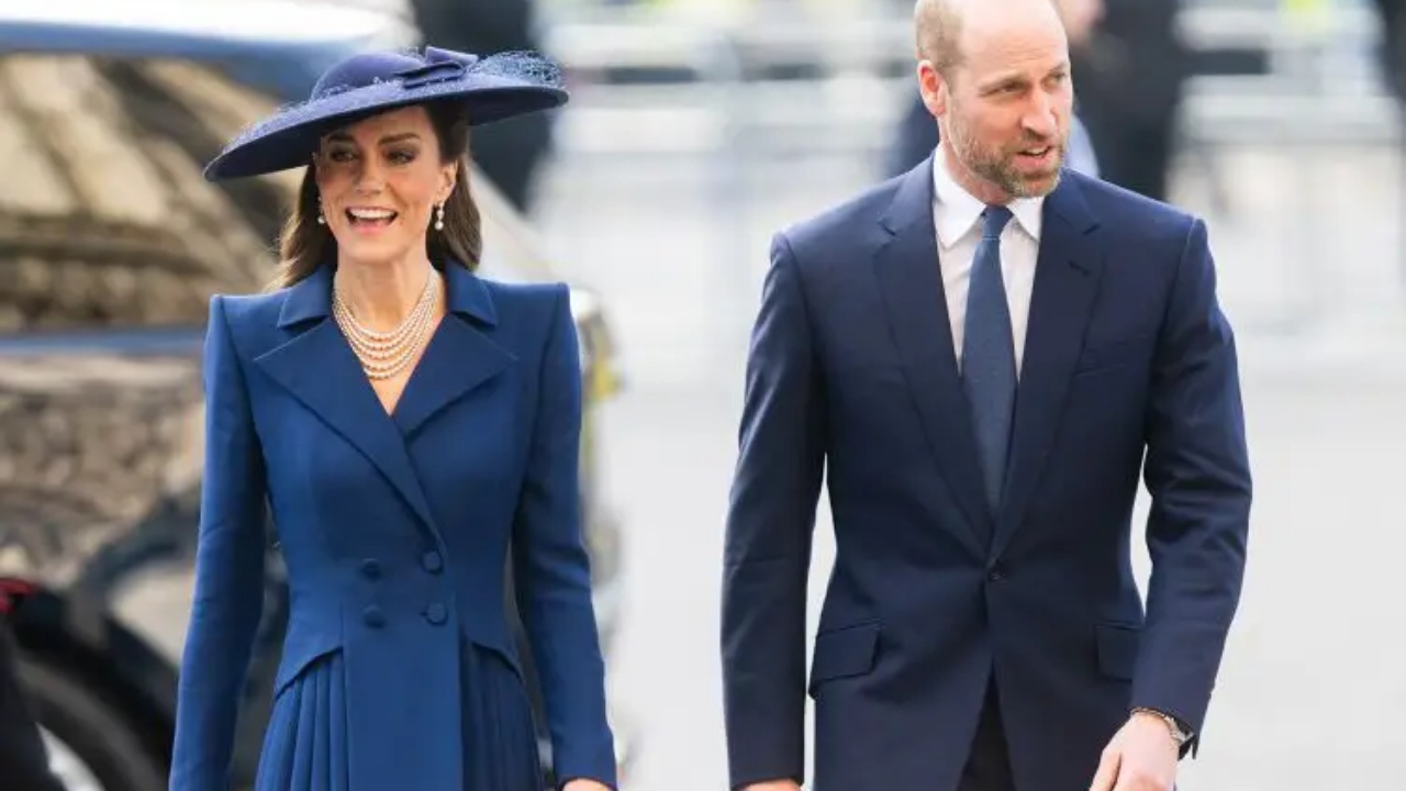 Princi dhe Princesha e Uellsit mbërritën të veshur me nuanca të koordinuara blu, me Kate që kishte zgjedhur një pallto elegante nga Catherine Walker dhe një kapelë të së njëjtës ngjyrë. Në ceremoni morën pjesë edhe Mbretëresha Camilla, Princesha Anne me bashkëshortin e saj Sir Tim Laurence, si dhe Duka dhe Dukesha e Gloucester.
