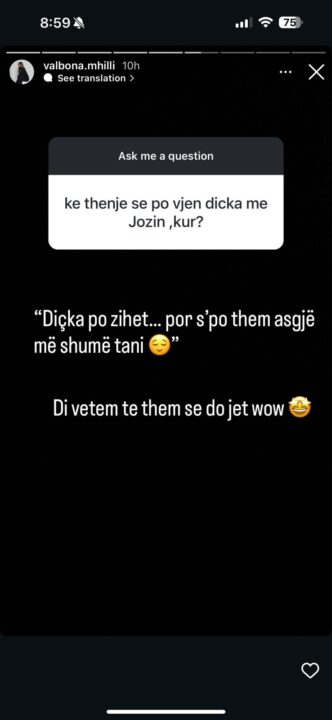 “Diçka po zihet… por s’po them asgjë më shumë tani. Di vetëm të them se do jetë wow”, shkruan Valbona në postimin e saj në “Instastory”.