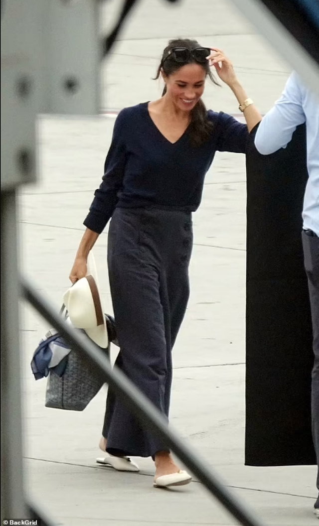 Meghan Markle dukej e kënaqur teksa u nis nga Shtetet e Bashkuara të Amerikës për t’u bashkuar me bashkëshortin e saj, Harry, në Lojërat Invictus në Gjermani.