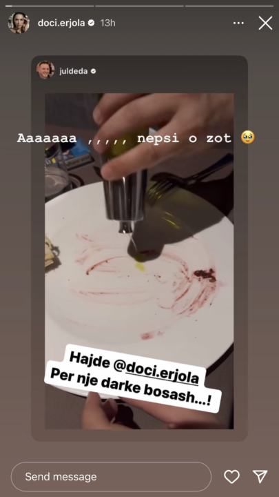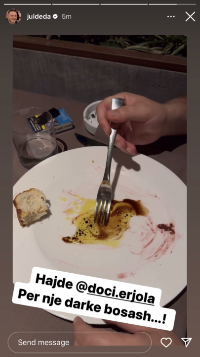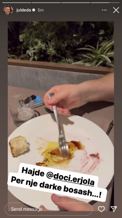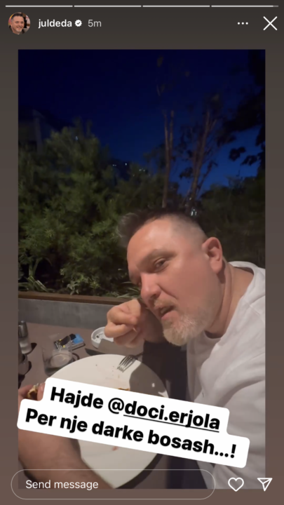 “Hajde Erjola Doçi, për një darkë bosash…!”, ka shkruar Juli.