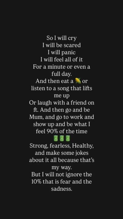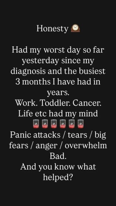 Ajo përshkroi një periudhë jashtëzakonisht të ngarkuar, ku po përpiqej të balanconte angazhimet profesionale, përkujdesjen për fëmijën e saj të vogël dhe luftën me kancerin, ndërkohë që përjetonte pasojat e gjithçkaje në jetën e saj të përditshme.