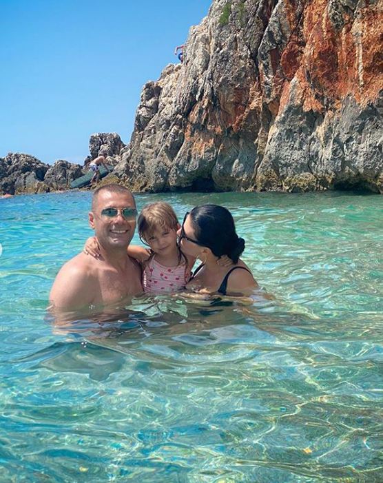 Rudina madje nuk ka ngurruar që me fansat të ndajë momentet e bukura nga pushimet. Ajo ka pozuar krah të bijës dhe ish-deputetit teksa qëndronin në ujë.