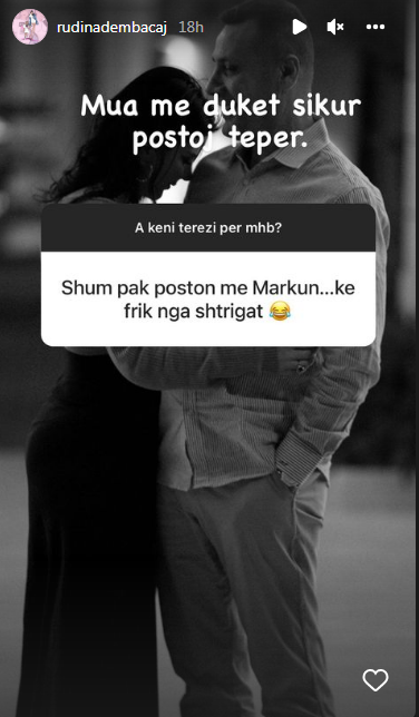 “Shumë pak poston me Markun… ke frikë nga shtrigat?”– shkruan ndjekësi, ndërsa Rudina publikoi një foto me burrin dhe bashkëngjitur me të shkruan:
