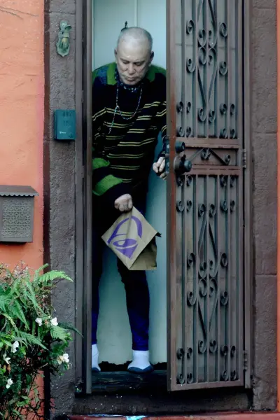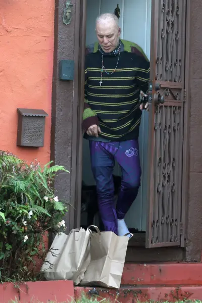 73-vjeçari dhe ish-boksieri profesionist u fotografua në natën e Vitit të Ri duke hapur derën e shtëpisë së tij në Los Angeles për të marrë porosi nga një supermarket. Në foto, Rourke shihej me kokë të rruar dhe i veshur me një pulovër me vija shumëngjyrëshe, pantallona vjollcë dhe çorape të bardha.