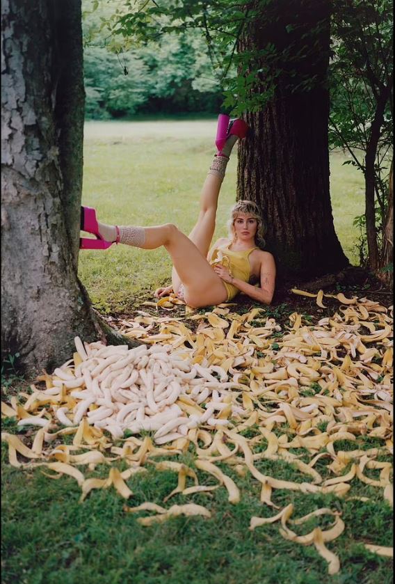 Cyrus që tërheq vëmendjen është pozicioni provokues që këngëtarja ka marrë, duke nritur këmbët lart. Ajo shihet e veshur me një body dhe me taka rozë me platformë.