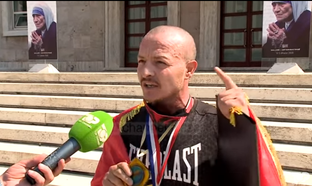 Albert Mahmuti, nënkampion i kikboksit, së bashku me gruan shtatzënë dhe katër fëmijët, prej dy ditësh proteston para kryeministrisë, duke kërkuar dëmshpërblim për medaljet e marra, ndërsa ka përfaqësuar Shqipërinë.