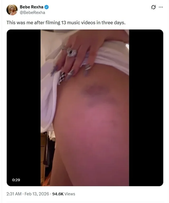 “Kjo jam unë pas xhirimit të 13 klipeve në tri ditë,” shkroi Rexha në mbishkrimin e videos, duke dhënë një pamje të sinqertë dhe të hapur mbi përkushtimin fizik dhe emocional që kërkon realizimi i një albumi vizual.
