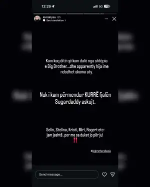 Në mesazhin e saj, ajo i drejtohet drejtpërdrejt edhe disa prej banorëve aktualë, si Selin, Stelina, Kristi, Miri dhe Rogert, duke nënvizuar se, pavarësisht se ajo nuk është më pjesë e lojës, emri i saj vazhdon të përmendet.