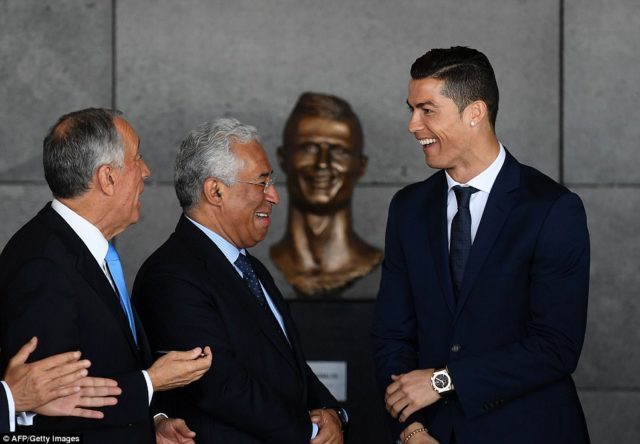 Në një ceremoni të zhvilluar mëngjesin e djeshëm në këtë aeroport, ylli portugez është nderuar nga autoritet vendase edhe me një bust, që për hir të së vërtetës nuk ngjante shumë me futbollistin.