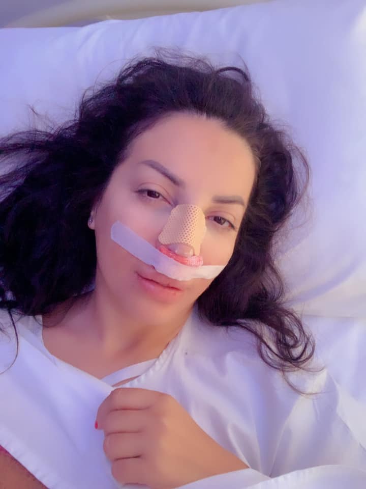 “Sapo dola nga operacioni me sukses”, ka shkruar këngëtarja krahas fotos, ku shihet me hundën e fashuar.