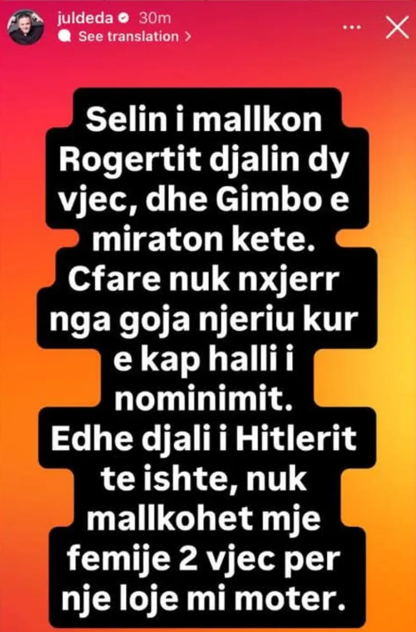 Mes reagimeve publike ka ardhur edhe një qëndrim nga aktori dhe ish-banori i këtij formati, Jul Deda, i cili ka reaguar përmes një postimi në rrjetet sociale. Ai është shprehur i revoltuar për përdorimin e fjalëve të tilla ndaj një të mituri, duke theksuar se presioni i lojës nuk mund të shërbejë si justifikim për deklarata të kësaj natyre.